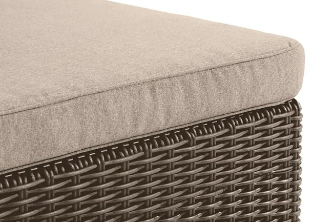 - Built for comfort with a cushion thickness of upto 7.5cm the California chaise longue set includes a 3 seater sofa and x1 footstool with cushion to accommodate up to 3 people