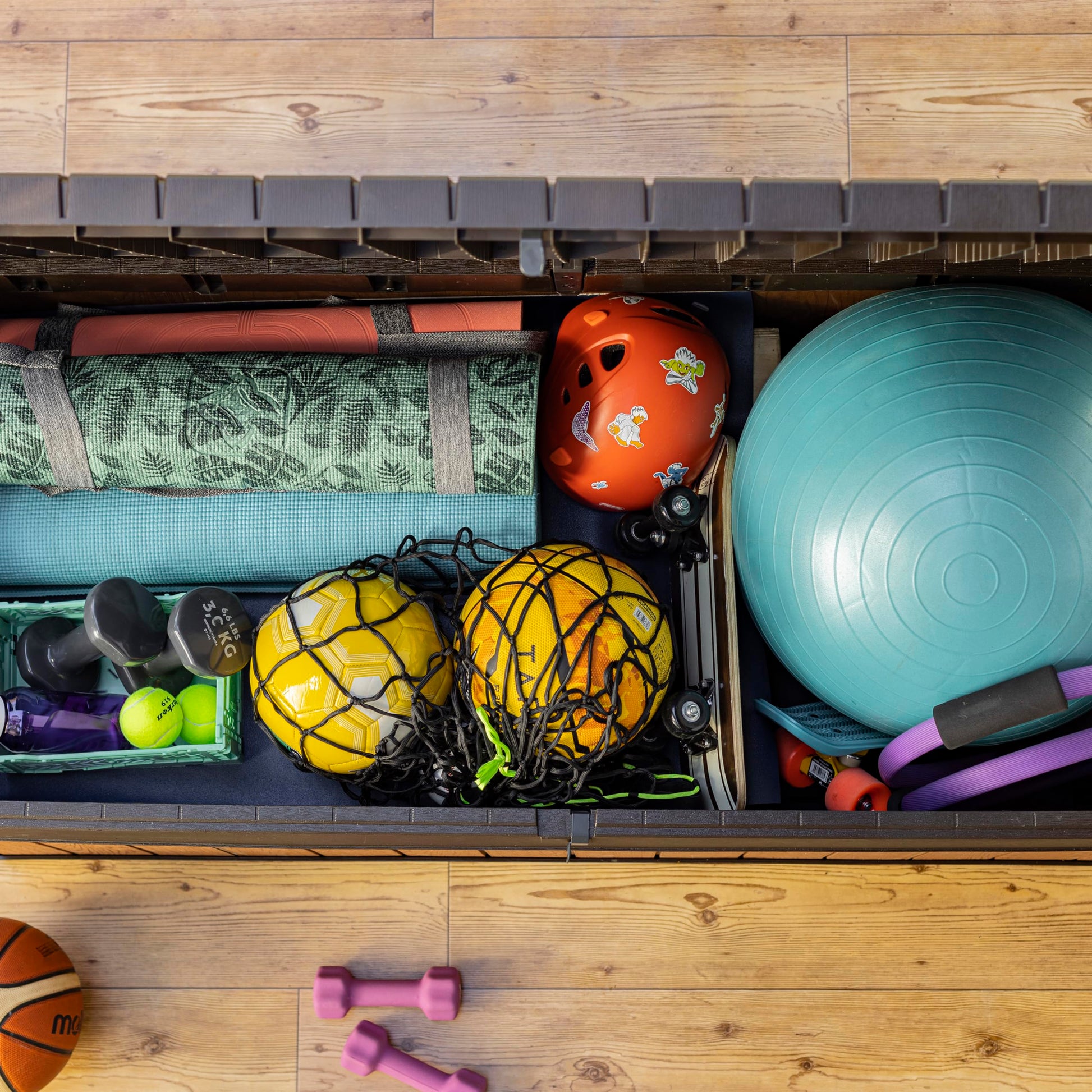 - Ideal outdoor garden storage box for garden tools and equipment, garden furniture cushions, garden games and accessories