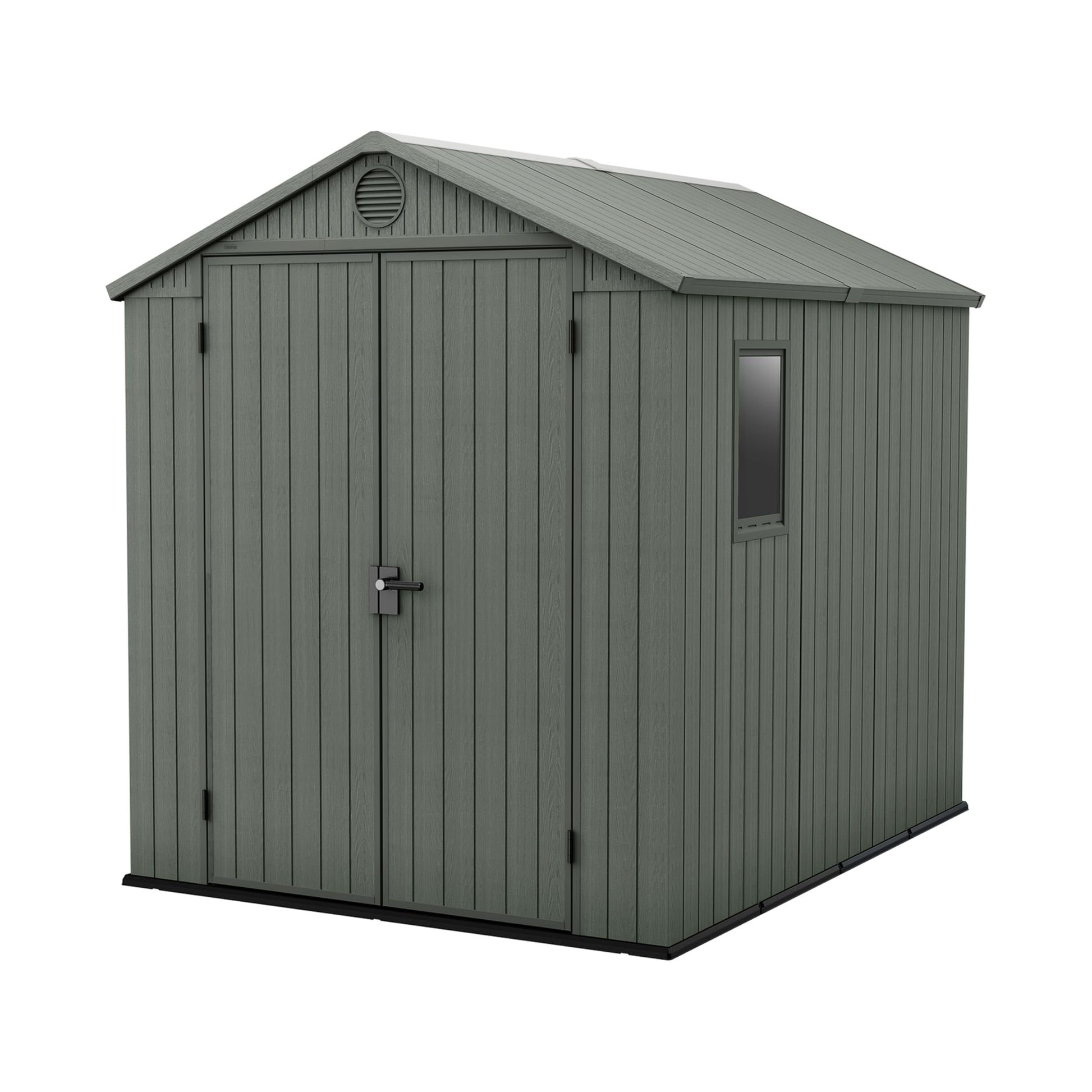 Keter Darwin 6x8ft Outdoor Resin Garden Shed – Green Evotech+ Wood-Look | Waterproof Resin Storage for Tools & Bikes | Double Doors | Lockable | 15 Yr Warranty | Zero Maintenance