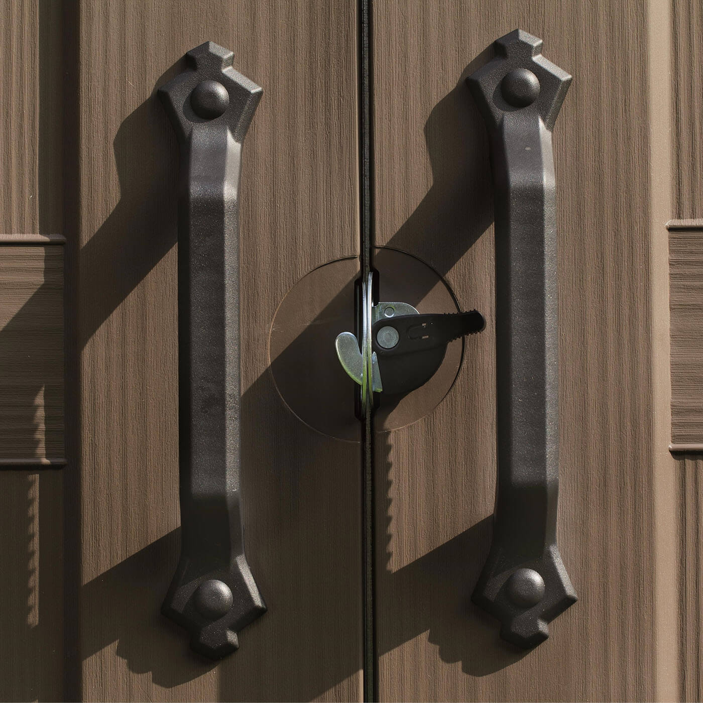 - Elegant wood effect exterior with double doors, plus ventilation grills for air circulation