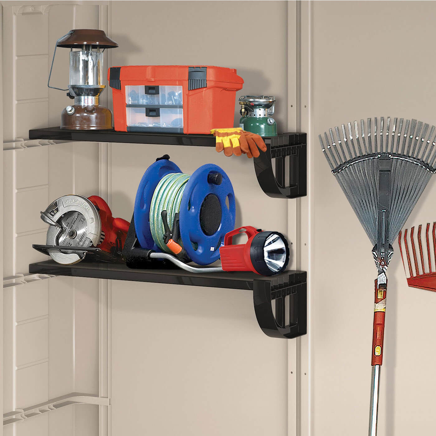 The 6 x 6 comes complete with two shelves and brackets, while a heavy-duty floor helps to keep wet weather and unwanted pests out. The shed is also designed to be secured with a standard padlock (not included) for peace of mind. Manufactured in durable, weather-resistant resin with steel reinforcement, the factor 6 x 6 is designed to be virtually maintenance and fade-free.