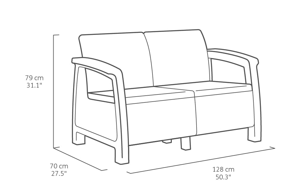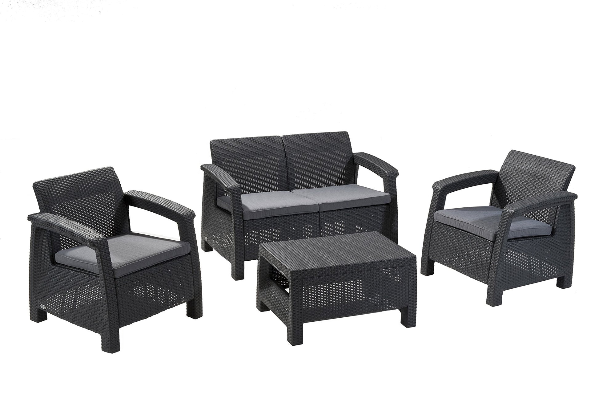 Keter GF06784 Corfu Outdoor 4 Seater Rattan Sofa Furniture Set with Accent Table - Graphite with Cream/Mushroom Cushions