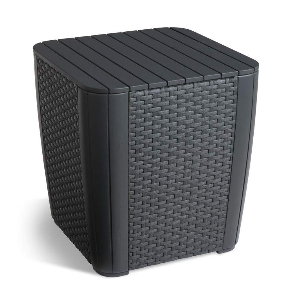 Keter Iowa 3-Piece Rattan Effect Storage Table Balcony Bistro Set - Graphite