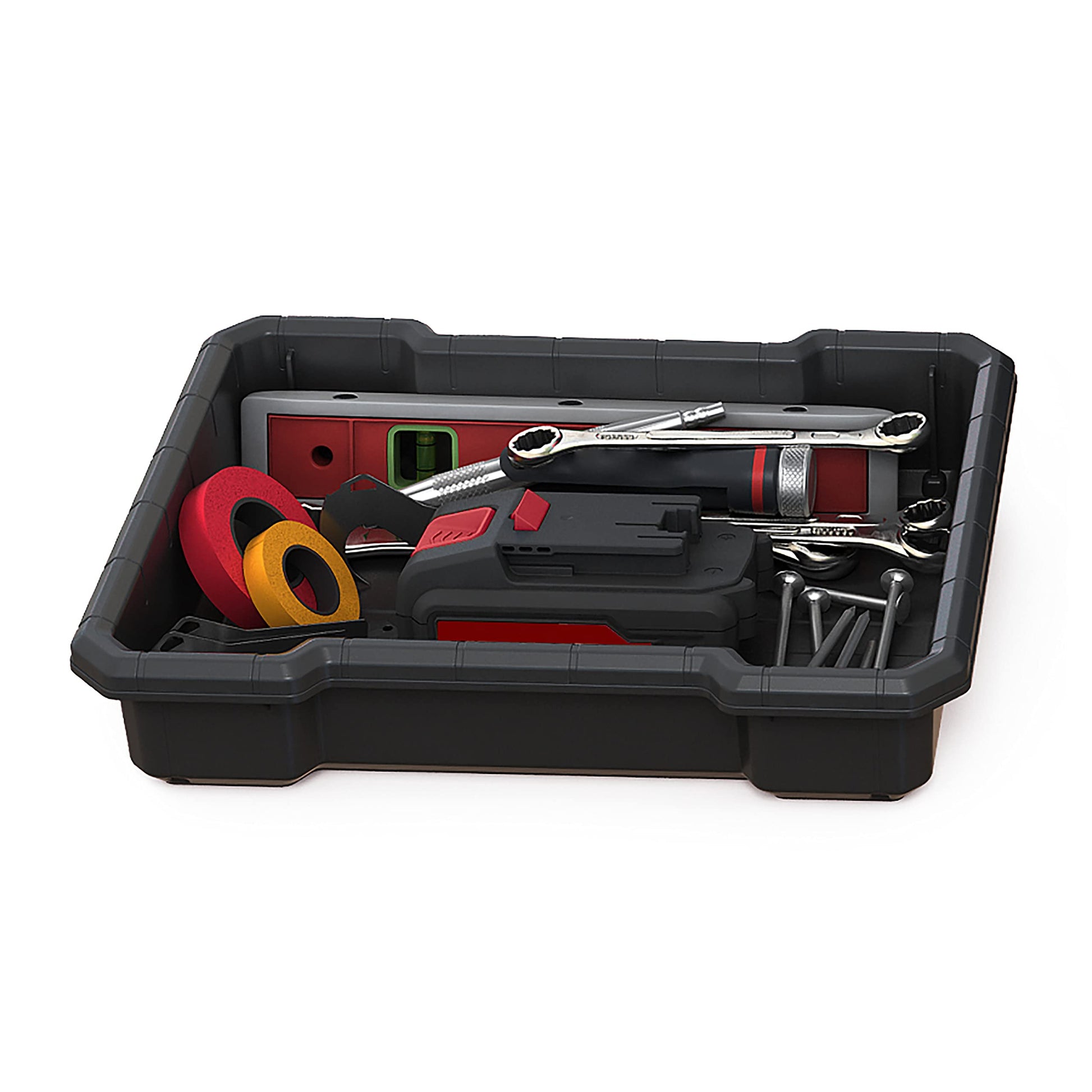 - Multiple sized removable bins for custom configuration & Transparent, polycarbonate lid to offer easy visibility
