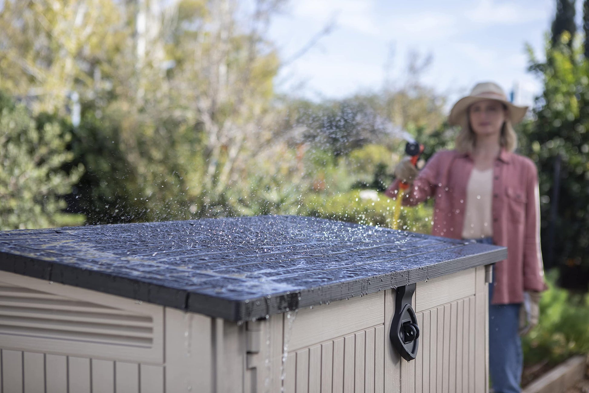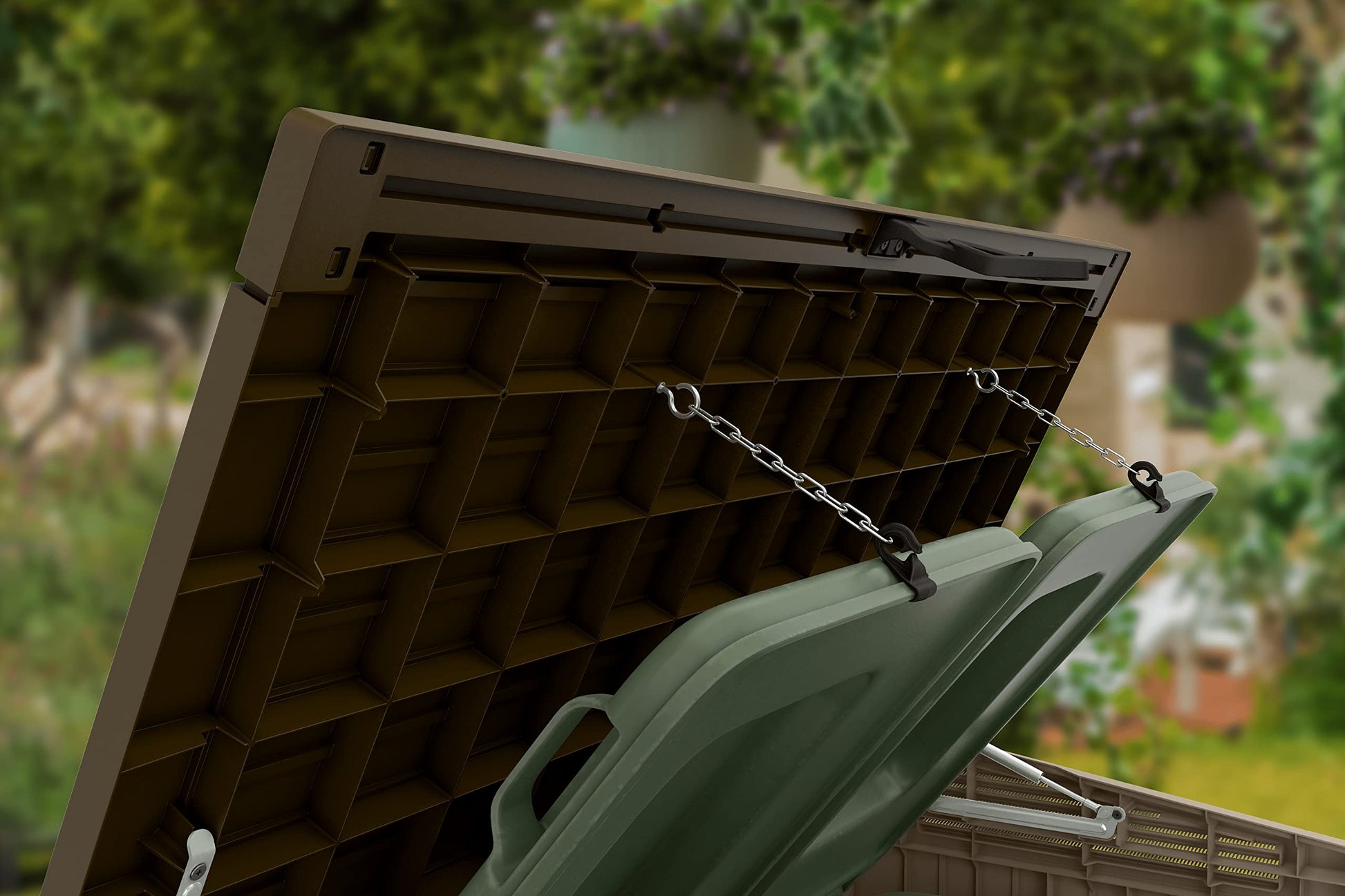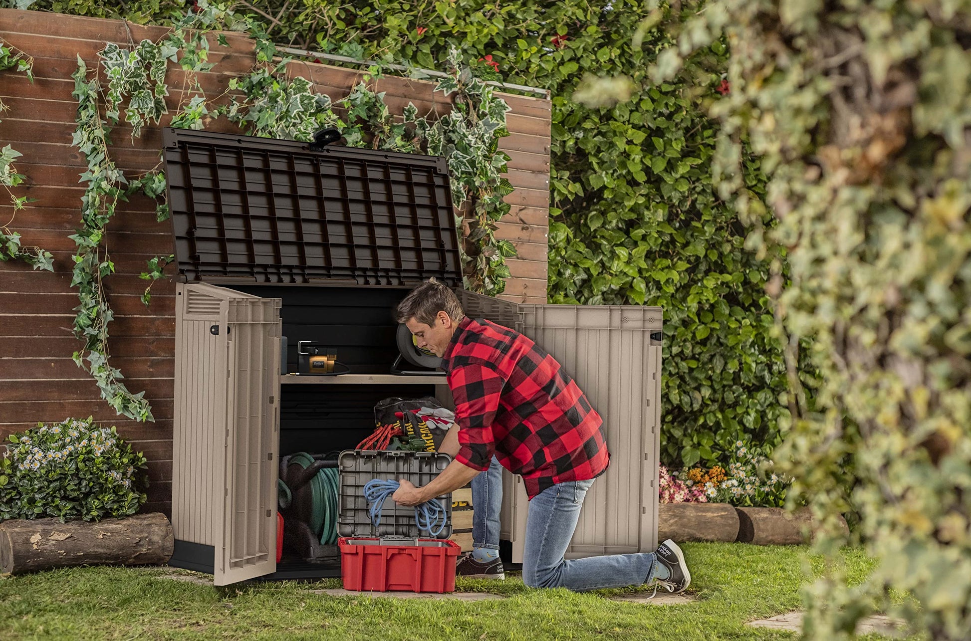 - Offers space for 2 wheelie bins of 120 L each or many garden utensils