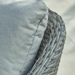 The set is made using 6mm flat synthetic wicker which is hard-wearing and weatherproof. This has been handwoven on to a study aluminium frame and has a contemporary two-tone effect to it.