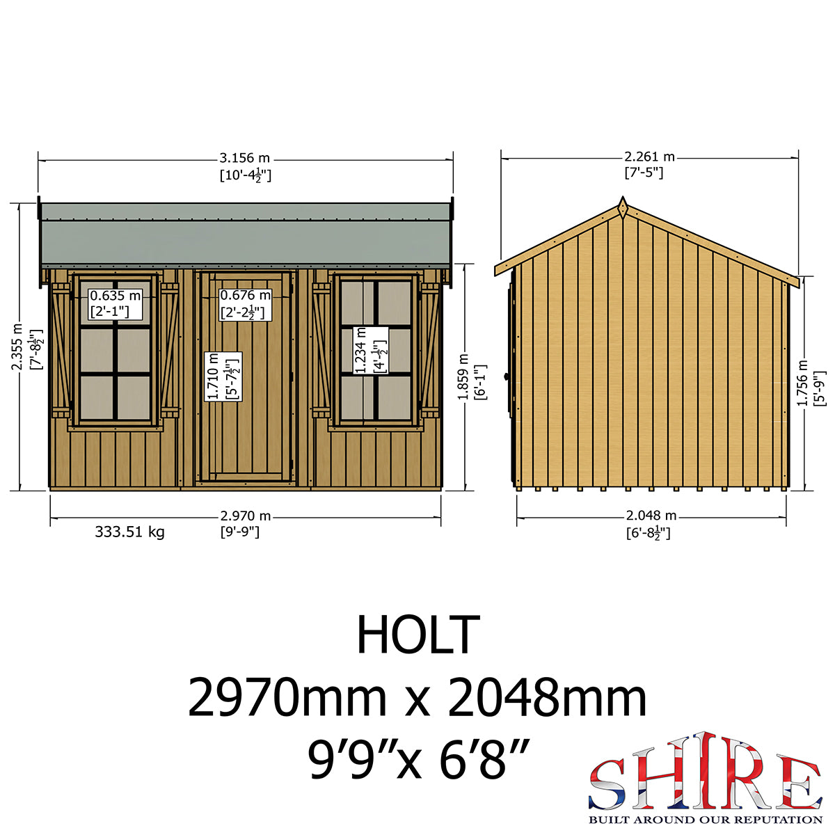 The Holt is an attractive shed featuring high grade 12mm shiplap tongue and groove cladding and strong 34mm sqauare framing with OSB roof and T&G floor. There is two opening glass windows for added light and ventilation. The single door is fitted with a rim lock and the door and window position are interchangeable. Faux shutters supplied.