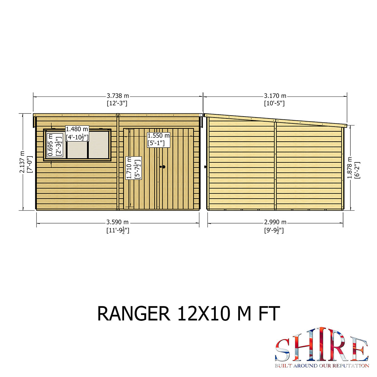 Shire Ranger 12ft x 10ft Pent Shiplap Shed