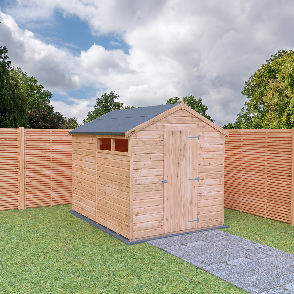 A popular garden shed which is manufactured from high grade, FSC approved timber with 12mm shiplap tongue and groove cladding over sturdy 34mm square framing. One fixed acrylic window, OSB roof and floor with a single door fitted with a hasp & staple ready for your own padlock.