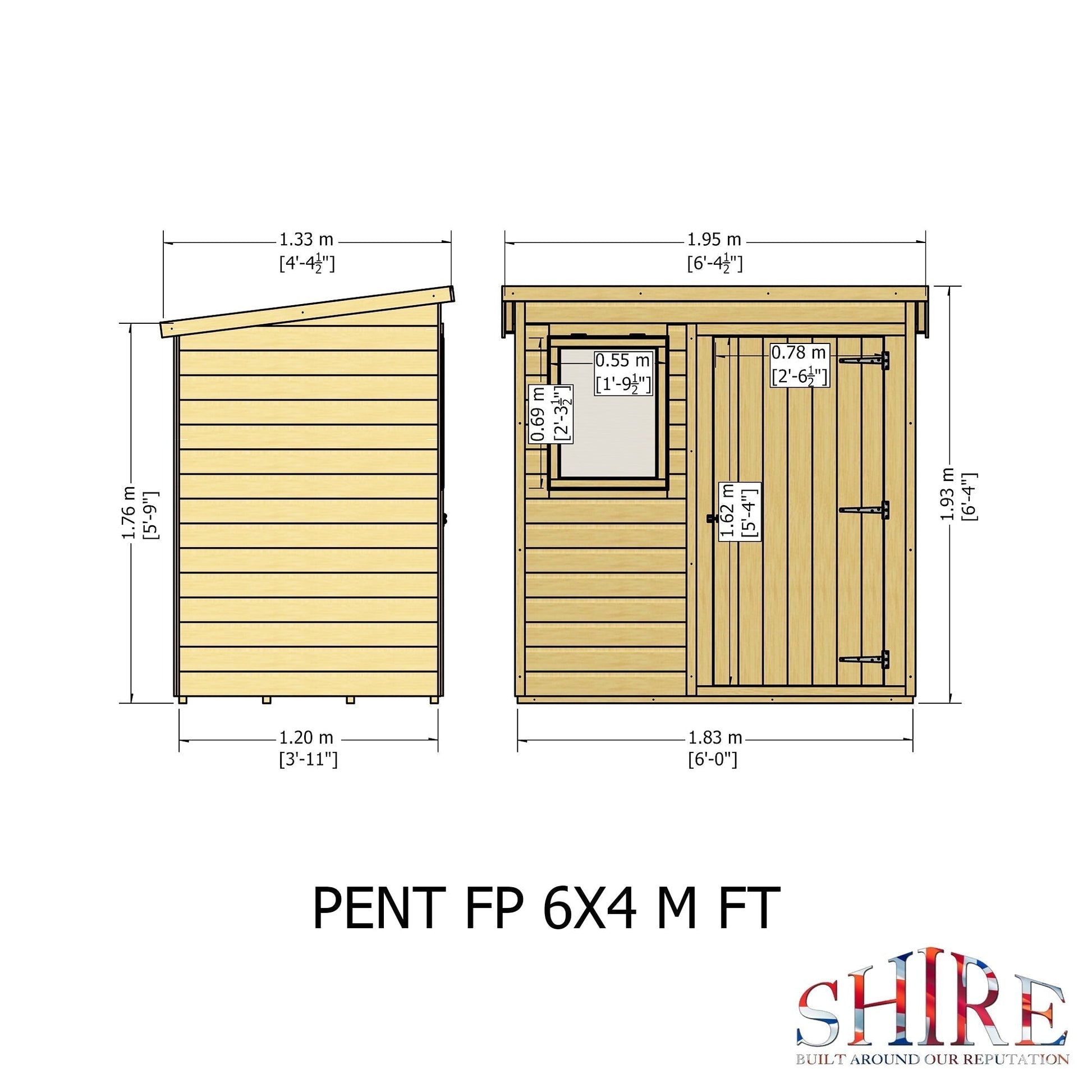 Compact garden shed ideal for all your tools, lawn mowers, bikes, toys; the list is endless! This Pent Shed has a joinery quality storm resistant opening window to the front of the building which is interchangeable left to right with the door. Both roof and floor are manufactured from solid sheet OSB. The cladding is 12mm slow grown, very high grade FSC approved pine on 34mm square framing.