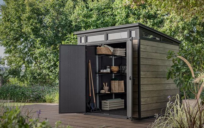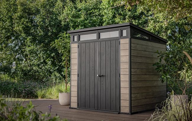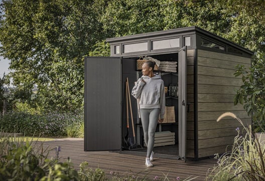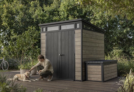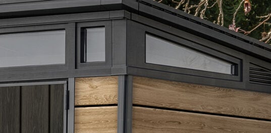 The pent 7x7 storage shed from Keter’s Signature Collection line adds durability, elegance, and style to premium outdoor storage. Its light, bright wooden hues can transform any outdoor space to a sophisticated look beyond the ordinary. The realistic wood looking walls are made from our innovative, cutting-edge composite material. That means it won’t chip, peel, flake, rot, or sustain water damage. And it’s completely maintenance free and weather-resistant. In fact, its steel-reinforced roof can withstand up to 200kg/sqm of snow. Inside, 8.4 cubic meters of space gives plenty of room for your outdoor gear, which can be kept neatly organised with the addition of the Keter Shelf Kit. And all will be secured behind double lockable doors. Crystal clear windows also allow for extra light and add to the overall sleek, modern design.